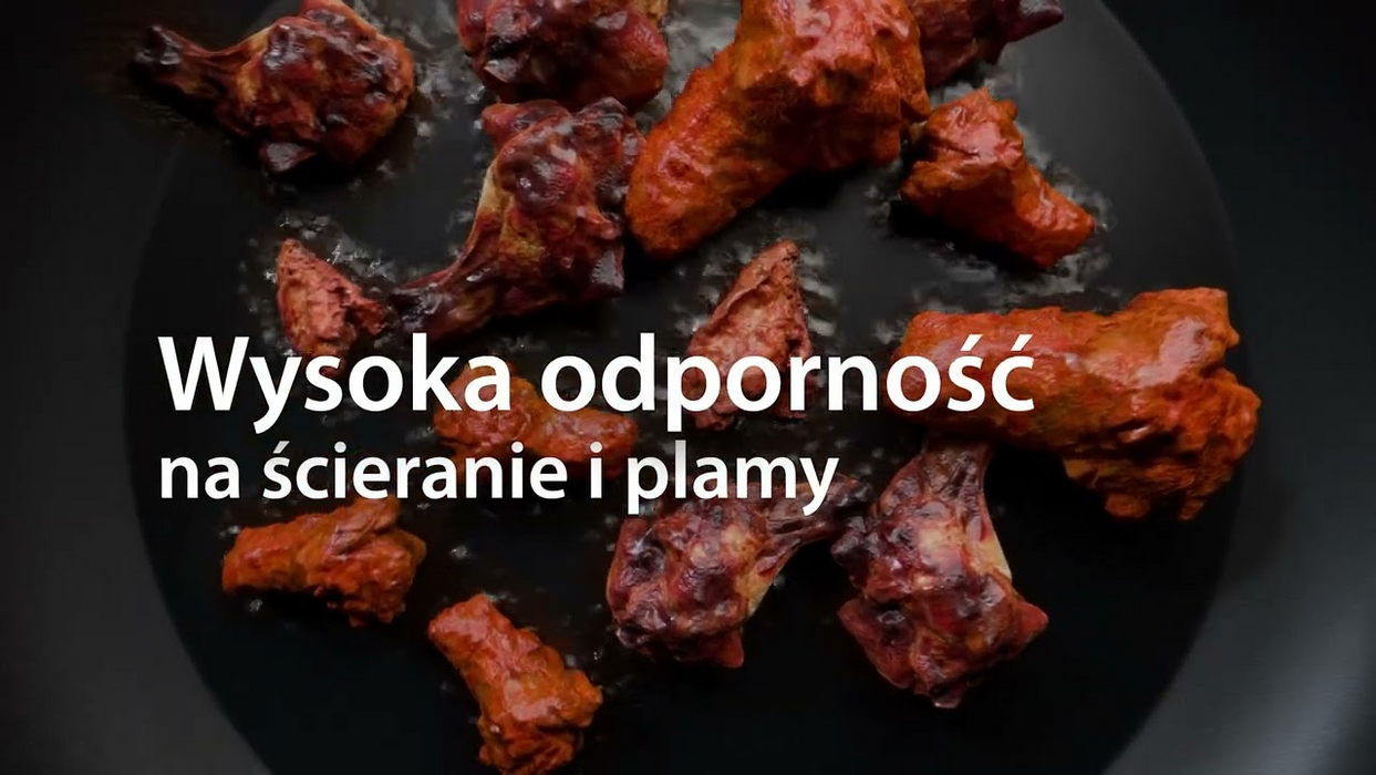 Do smażenia zalecamy średnią temperaturę i używanie drewnianych lub plastikowych przyborów kuchennych, aby nie uszkodzić powłoki.